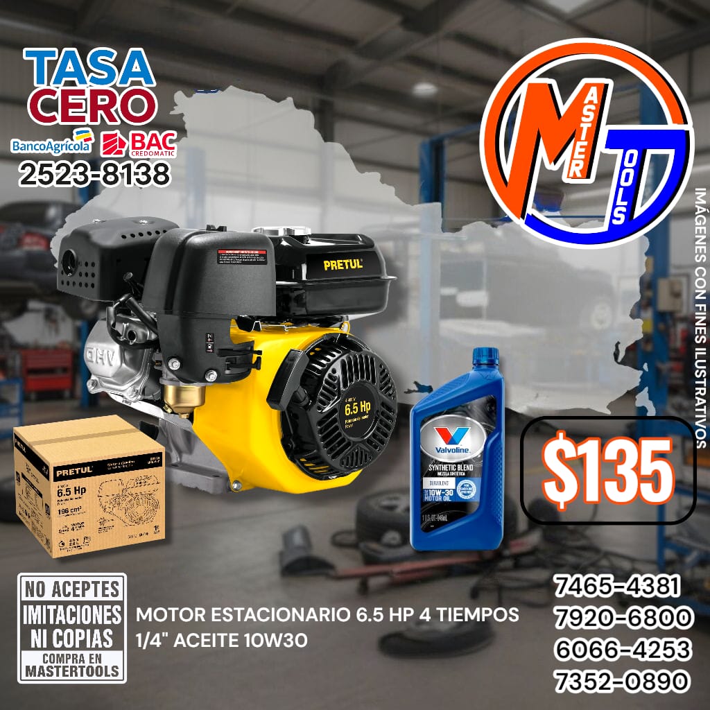 MOTOR ESTACIONARIO 6.5 HP 4 TIEMPOS, 1/4" ACETITE 10W30 cantidad