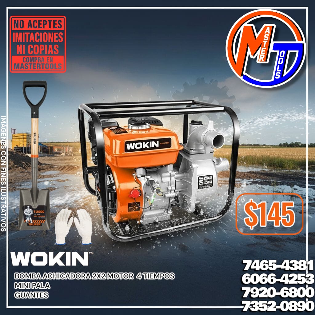 BOMBA ACHICADORA 2X2 MTORO 4 TIEMPOS, MINI PALA, GUANTES