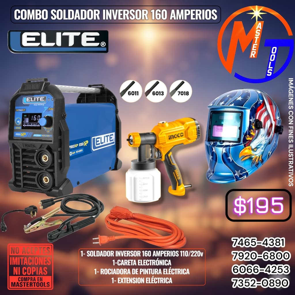 1- SOLDADOR INVERSOR 160 AMPERIOS 110/220V 1- CARETA ELECTRONICA 1- ROCIADORA DE PINTURA ELECTRICA 1-EXTENSION ELECTRICA