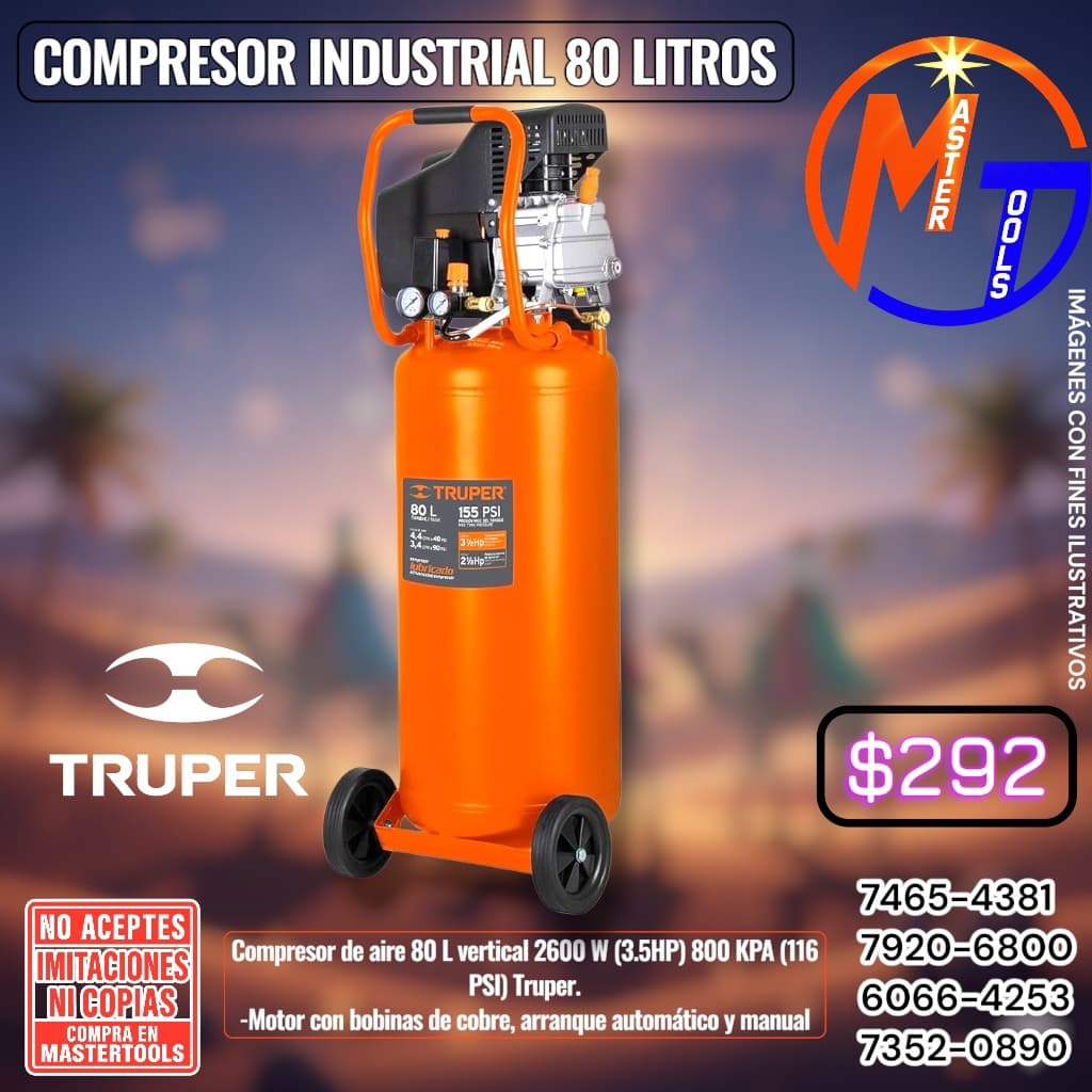 -COMPRESOR DE AIRE 8 O L VERTICAL 26002 (3.5HP) 800 KPA (116 PSI) TRUPER.