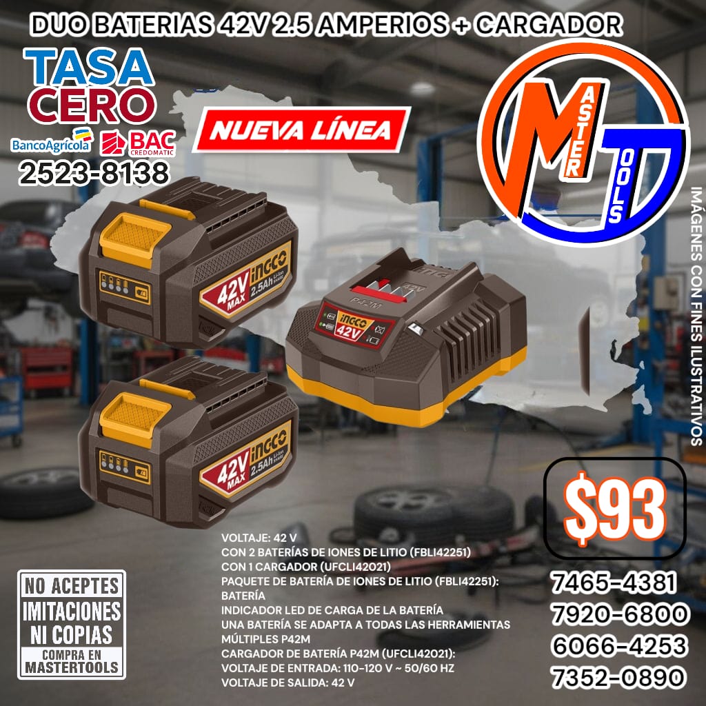 DUO BATERIAS 42V 2.5 AMPERIOS + CARGADOR cantidad