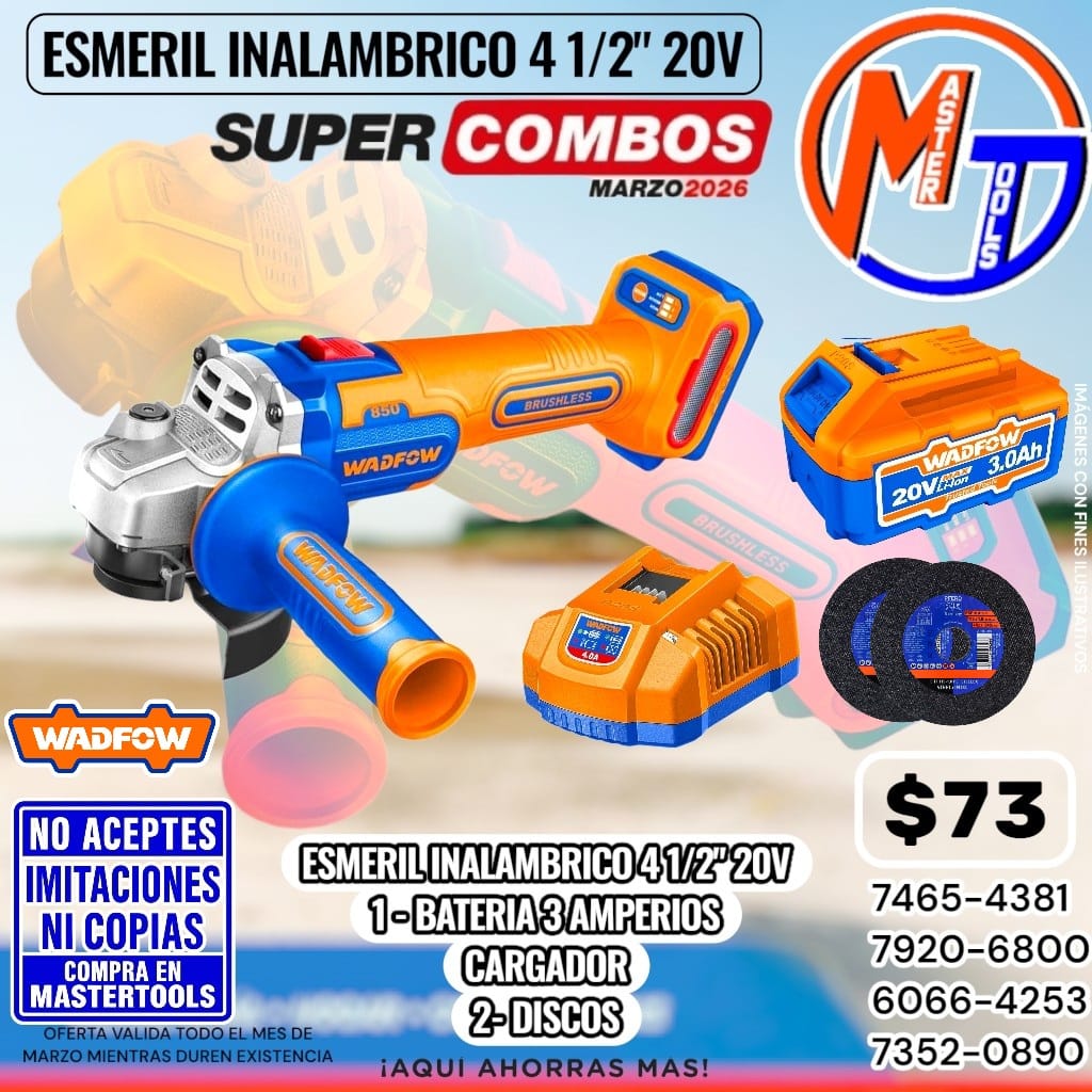 ESMERIL INALAMBRICA 4 1/2″ 20V 1 BATERIA 3 AMPERIOS CARGADOR 2 – DISCOS