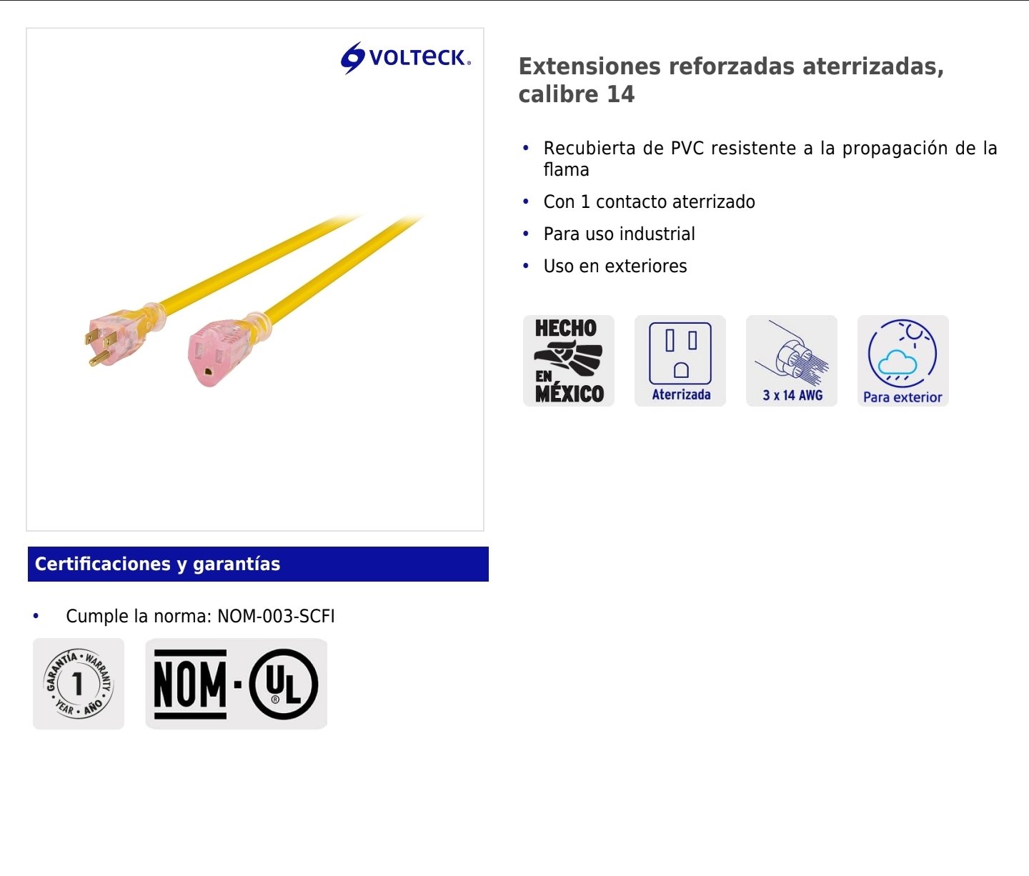 EXTENSION ELECTRICA DE 30 METROS AMARILLA CALIBRE 14