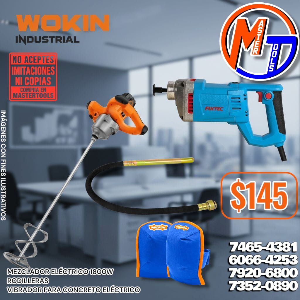 MEZCLADOR ELÉCTRONICO 1800W, RODILLERAS, VIBRADOR PARA CONCRETO ELÉCTRICO cantidad