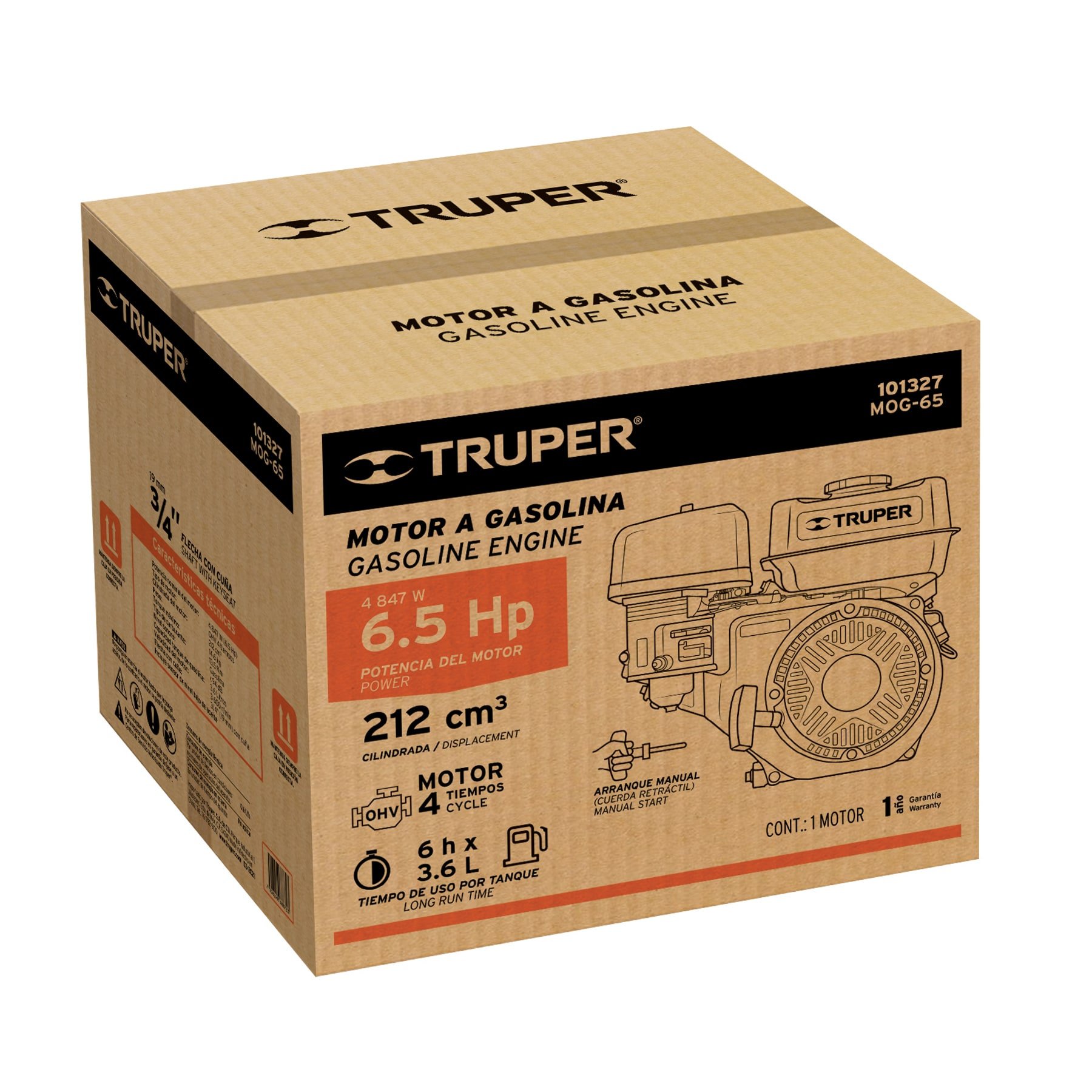 MOTOR ESTACIONARIO A GASOLINA 6.5 HP DE 212CC 101327