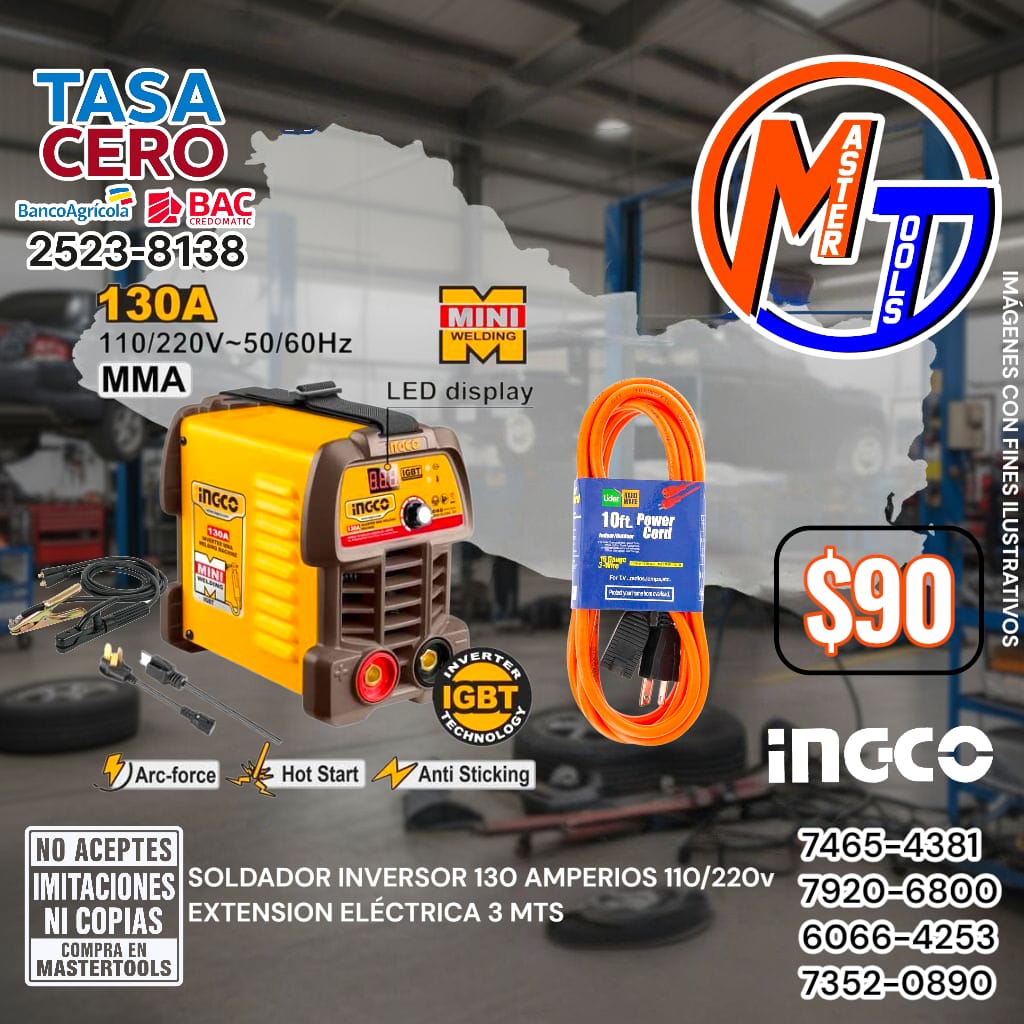 SOLDADOR INVERSON 130 AMPERIOS 110/220V, EXTENCION ELÉCTRICA 3MTS cantidad